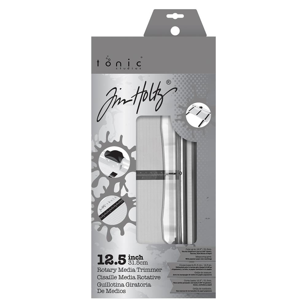 The brand new Tim Holtz® Rotary Media Trimmer! Featuring a geared rotary cutting blade, this trimmer effortlessly cuts through a range of crafting mediums. The trimmer offers both imperial and metric rulers, as well as a handy 0.25 inch gridded base with popular paper sizes for ease of use. With a compact base that has a cutting length of 12.5 inch/31.5cm and extendable arms that can expand it to 12 inch/30.5cm, this trimmer is both versatile and practical. Not only is the Tim Holtz® Rotary Media Trimmer highly engineered and durable, it can also cut through various substrates including: heavy duty chipboard (up to 0.05 inch thick), heavyweight cardstock (up to 130#/350GSM), synthetic surfaces (Yupo, acetate), and lightweight vellum with ease. Imported.